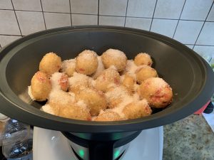 - Cuando terminemos destapamos la Varoma y movemos para que la sal se distribuya por todas las papas y listas para comer.