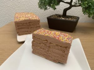 NOTA: también podemos derretir 100g de chocolate postres con 100g de nata animal y cuando esté casi frío hacer un Drip chorreando por encima.