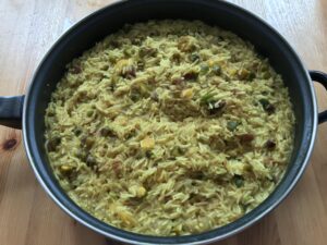 - Añadimos los frutos secos, mezclamos bien con el arroz.