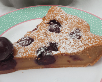 Hola!! Hoy vamos con una tarta de origen francés pero que tiene tanto éxito que ya se elabora en cualquier parte del mundo y con cualquier otra fruta, pero quizá esta es la más común aunque hay que intentar que la fruta que usemos no suelte mucha agua. Yo la hice en época de cerezas y por lo tanto usé las del Valle del Jerte, que son maravillosas.