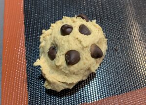 5.- Ponemos un tapete o papel en una bandeja de horno y hacemos bolas (yo lo hice con un saca bolas de helados) y las colocamos separadas porque crecen un poquito.