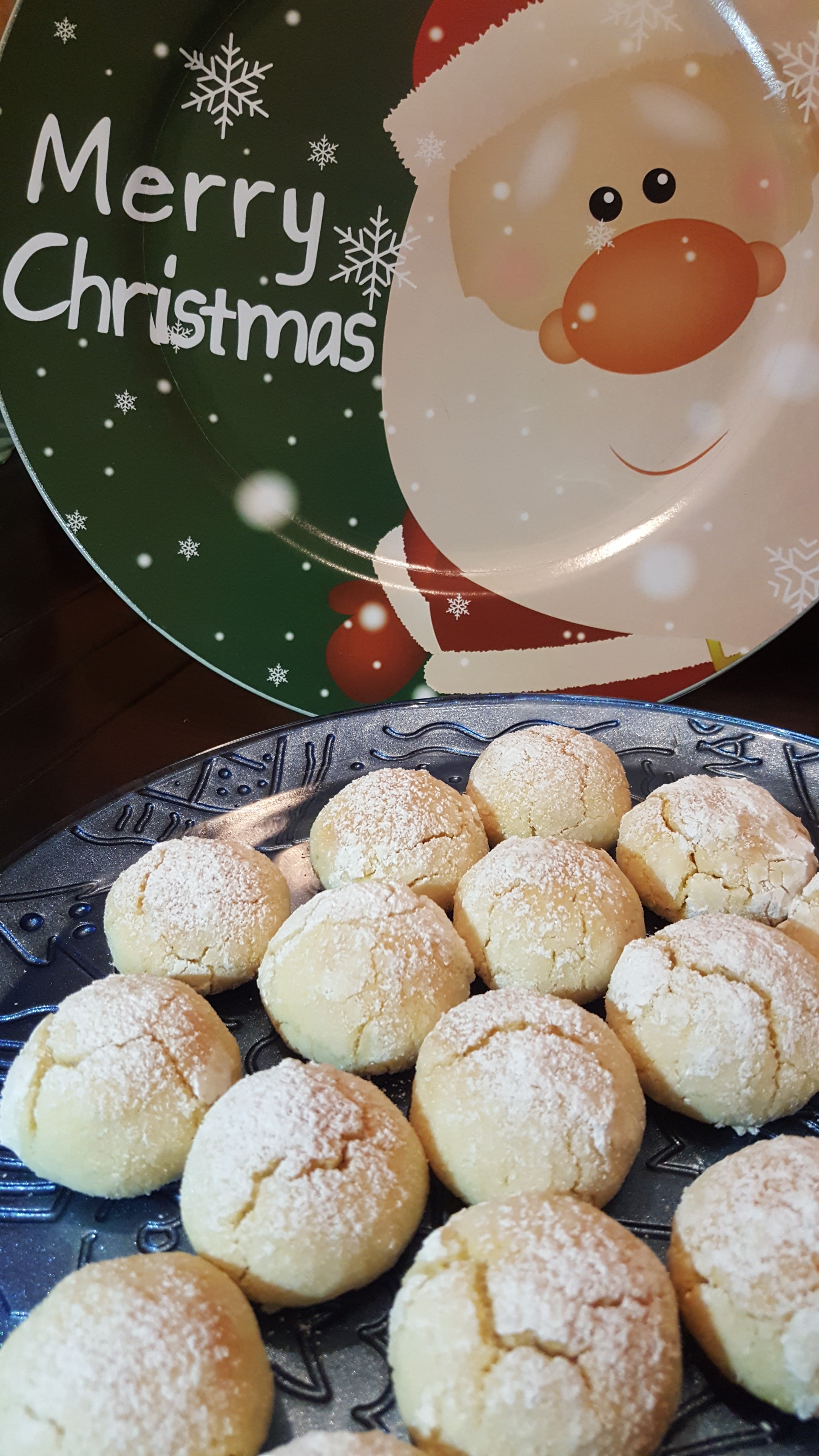 - Comenzamos a formar las galletas haciendo bolitas más o menos del mismo tamaño y las vamos pasando por azúcar granulada y muy bien por azúcar glas.