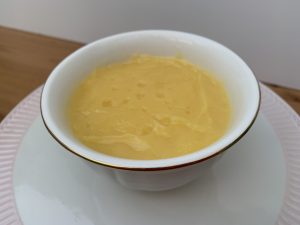 Es una crema bastante ácida pero no sabe a huevo, si queréis, solo le ponéis la ralladura de 1 limón pero yo quería acentuar el sabor ya que todo lo demás del postre que voy a preparar es bastante dulce.