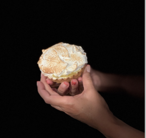 - Pasamos el merengue a una manga o decoramos con la cuchara de forma rústica.