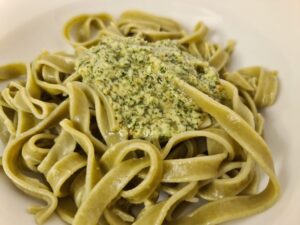 Hola!! la receta de hoy nos súper encantó y no debes dejar de hacerla, si no la has hecho nunca. Este Pesto verde es delicioso además de súper fácil, pero debes tener en cuenta que usaremos frutos secos, así que mi sobrino no pudo probarla.