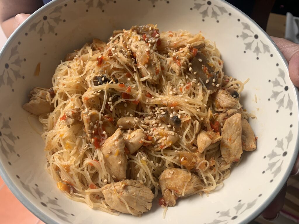 Súper bueno y original ya que los fideos de arroz le dan el toque oriental que tanto apetece,
