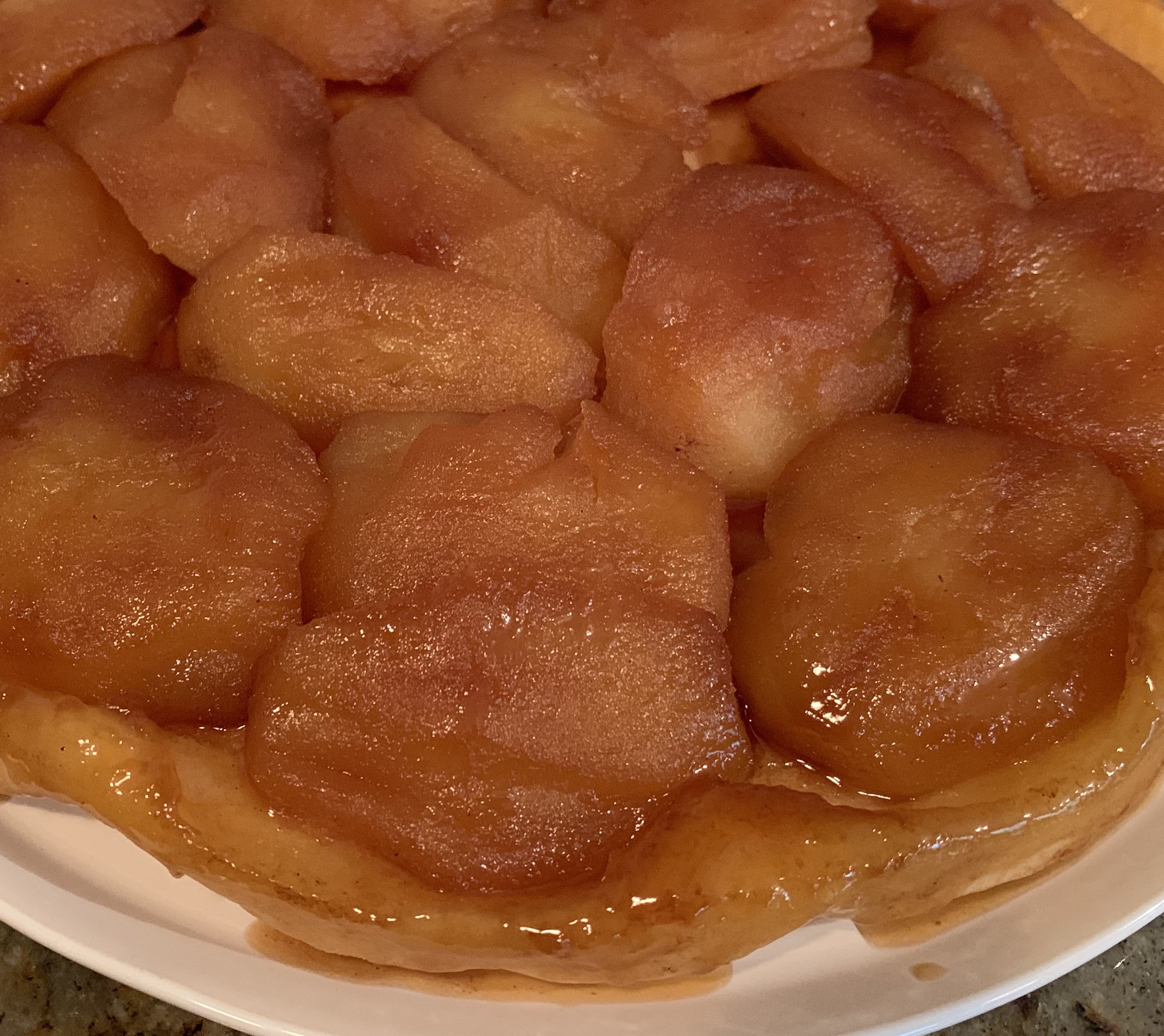 La historia de esta tarta nos habla de las hermanas Tatin que regentaban un hotel con el mismo nombre allá por el siglo XIX, y por un despiste hornearon más de la cuenta las manzanas y para no tirarlas, les pusieron una masa por encima y la voltearon. Y aquí está este maravilloso postre que por ciento, es el preferido de mi hermana.